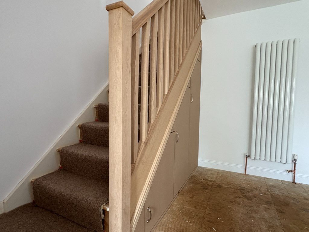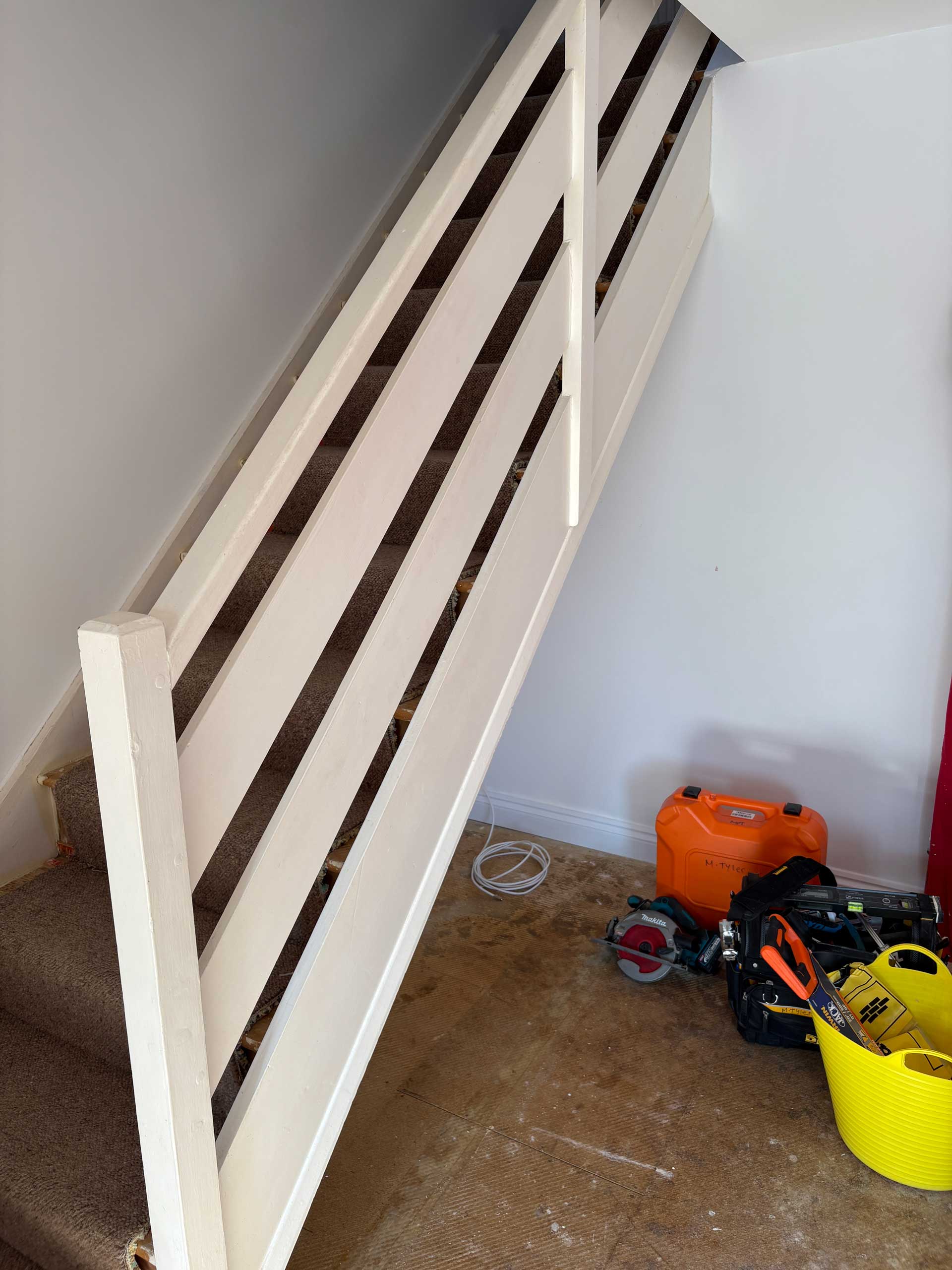 “Matthew at Smartfix Carpenters fitted a complete replacement oak stair rail & spindles both up the stairs and along the return of the landing. He also fitted a new under stairs cupboard enclosure with 3 access doors for storage. Matthews work was extremely good and he overcame a few issues which were unexpected. The Final outcome of his work was excellent with the new stairs and cupboards transforming the look of our lounge and landing areas. Matthew worked very hard to achieve an excellent finish and he definitely shows dedication to his profession. (He’s a rare example these days of a true craftsman!). We would most definitely recommend Matthew to anyone looking for a genuine skilled carpenter who clearly takes great pride in this work.”